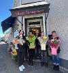 Siop flodau a chegin ymysg y busnesau sy'n elwa o hwb ariannu