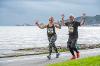 Rhedwyr a chefnogwyr ar lan môr Abertawe ar gyfer ras 10k flynyddol lwyddiannus